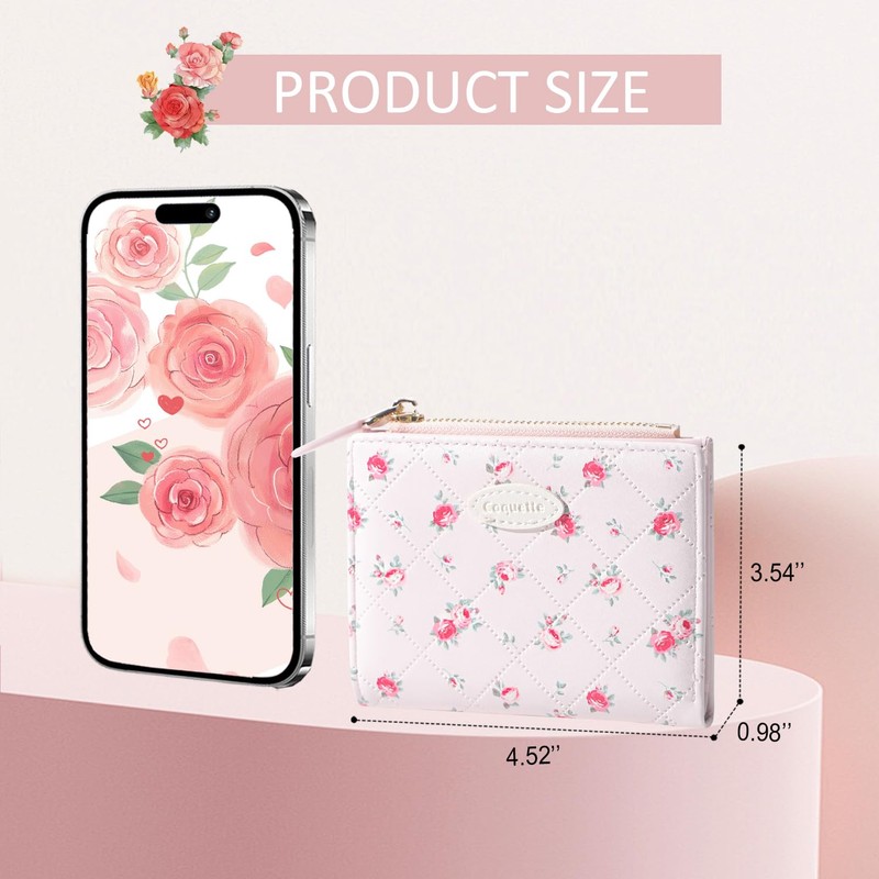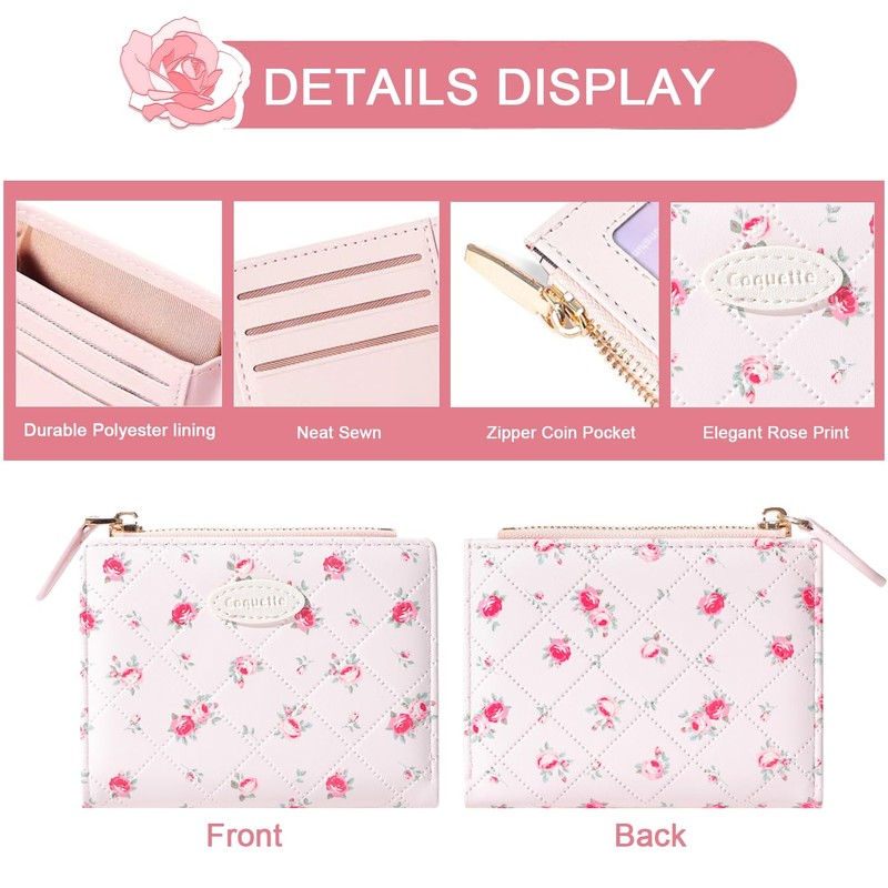 - The cute wallet is made of Pu Leather with floral print, so lovely.
