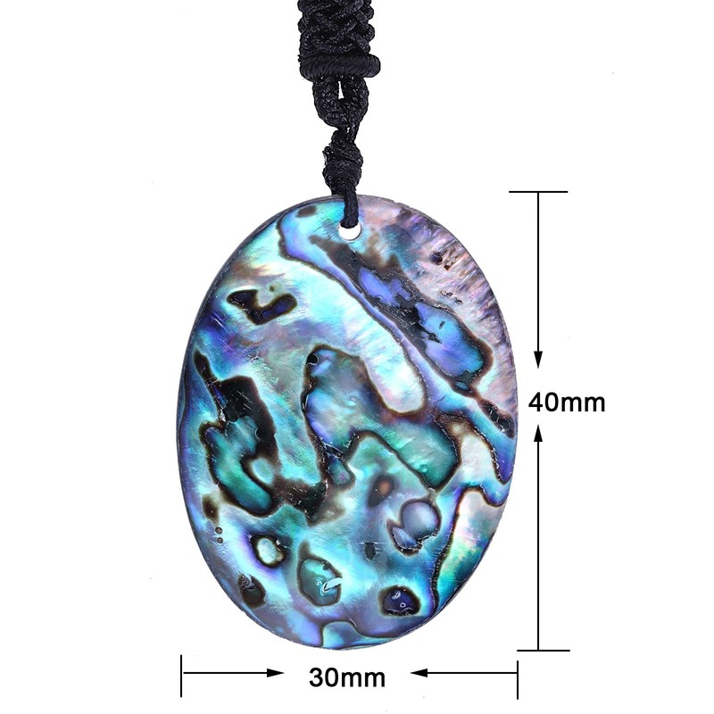 - Detail Size: The abalone shell necklace totals length: 11.4-15.3"(29-39cm). Rope circumference: 18.1-25.1"(46-64cm), thickness: 0.1"(2mm). Weight: 21-26grams. Oval length: 1.6"(40mm), width: 1.2"(30mm), thickness: 0.2-0.3"(5-8mm). Due to it has adjustable rope, so for almost people it enough length to wear.