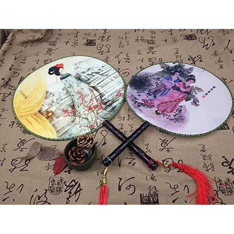 Suoirblss Set of 4 Elegant Vintage Chinese Fan Dancing Fan Traditional Painting Round Hand Fan Classic Palace Paddle Hand Fan