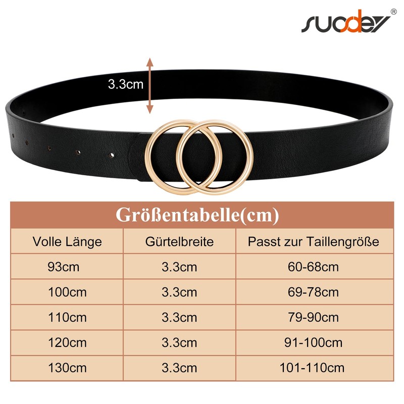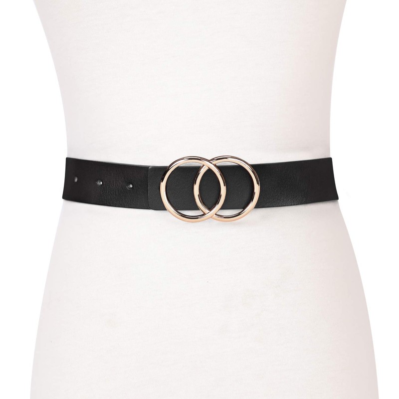 - ✦ [Gold double O-ring buckle] --- A great looking belt to spice up your outfit! This fashionable leather belt for women with a beautiful overlapping circle buckle really makes a difference to your outfit. You will get many compliments for this beautiful belt.