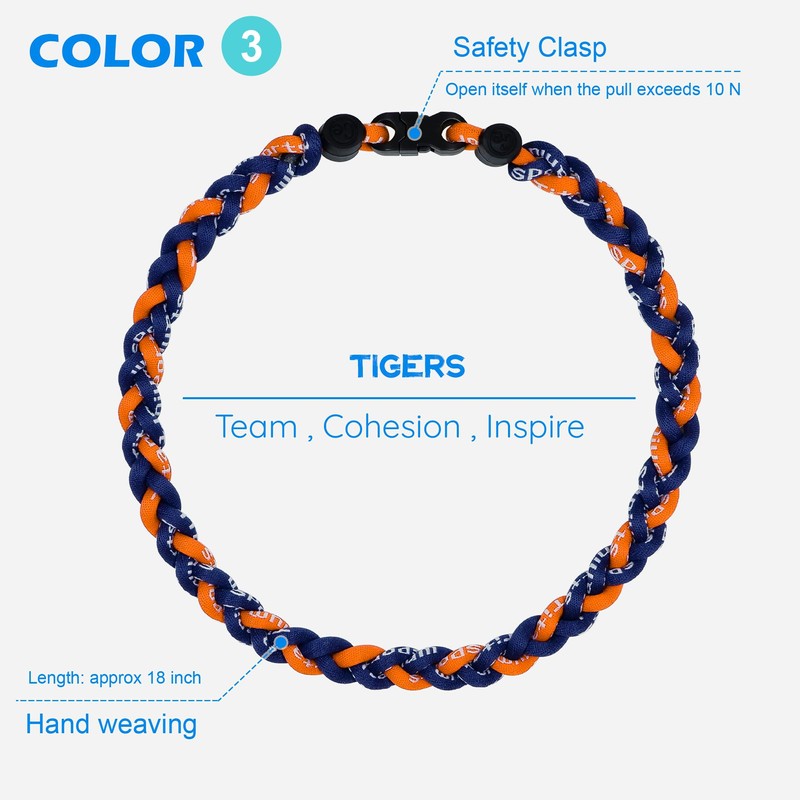 SUPBOMM 3 pcs Baseball Rope Necklaces, League Team Colors Braided Necklace, Baseball Team Gifts, Tigers