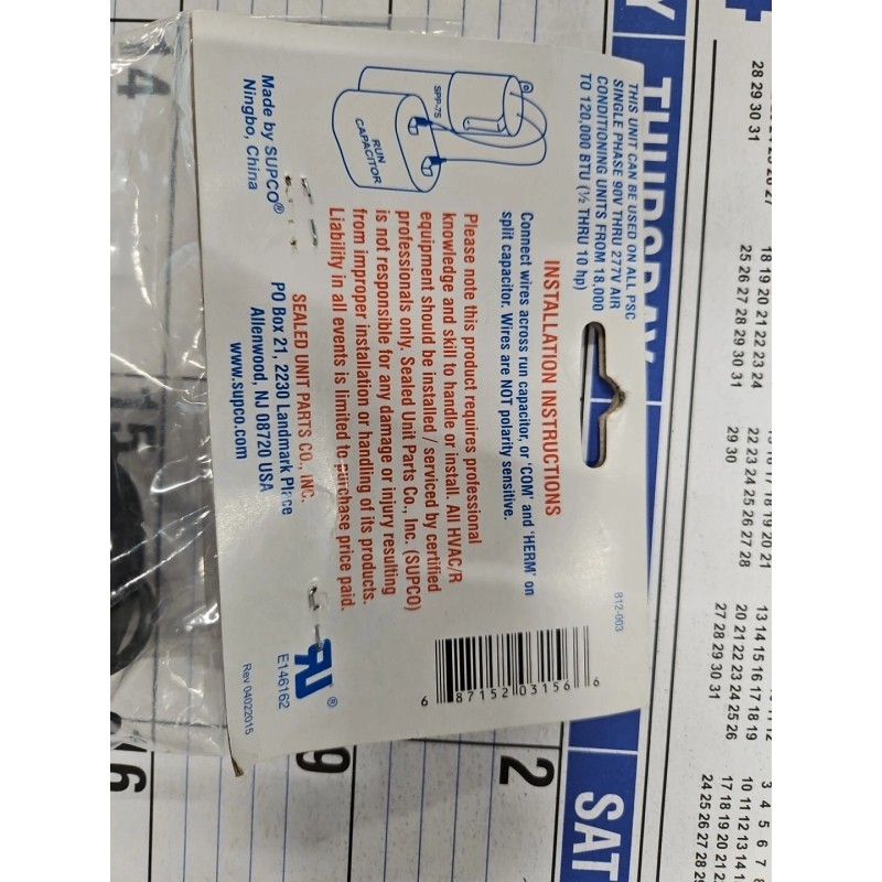 SUPCO SUPER BOOST RELAY/HARD START CAPACITOR SPP7S