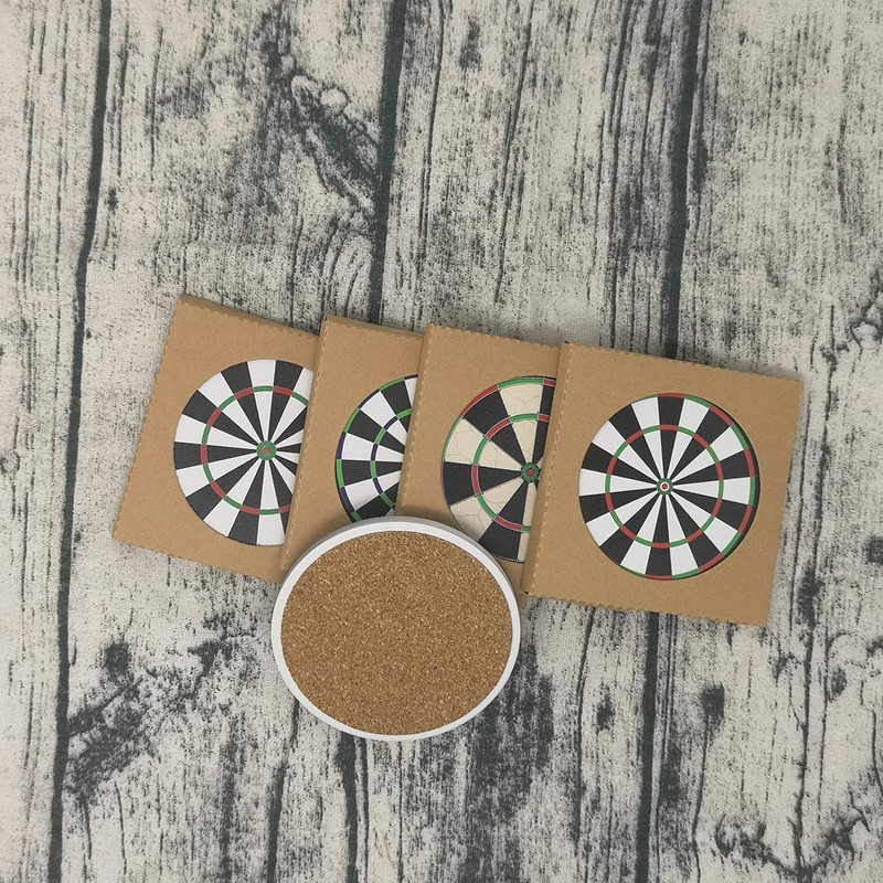 SUPCOW Dart Doard Design Ceramic Coasters, 4 Pack of Absorbent Stone for Drinks, Protect Furniture from Coffee or Tea Marks