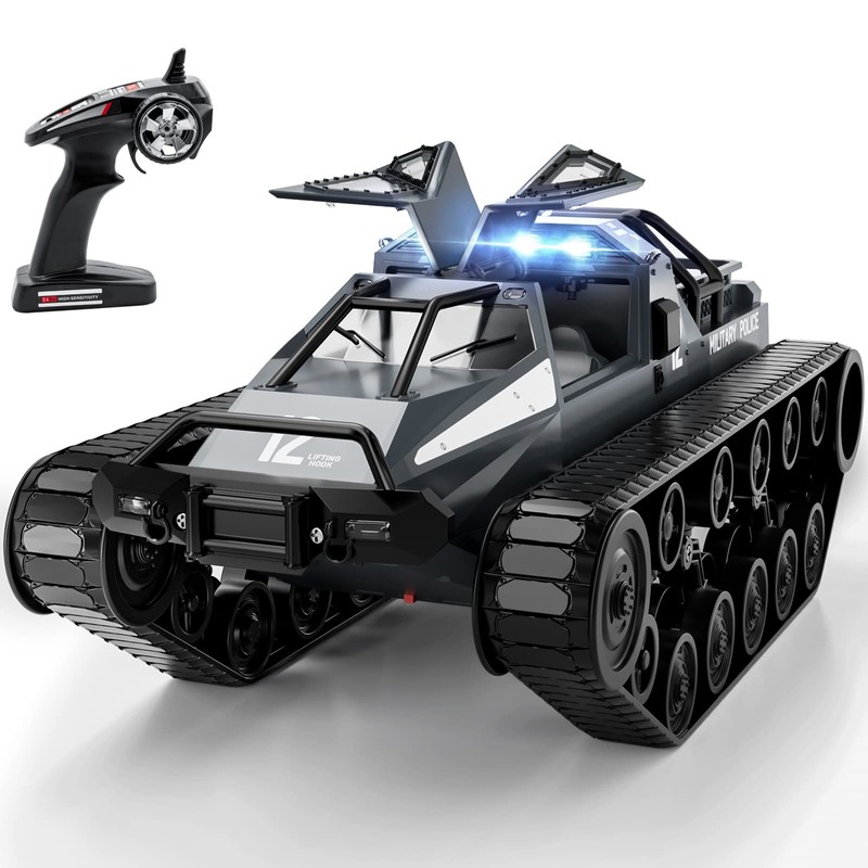 - 【Adapt to a variety of terrain】: All terrain kids tank,With 360° rotation and 30° climbing angle, the remote control car tank can reach 10cm when across the ditch, and 5cm wading depth. Featuring self-adjusting front- wheel caterpillar track, the rc vehicle can conquer different terrains, such as pavement, land grassland, beach, gravel and more.