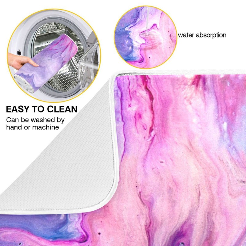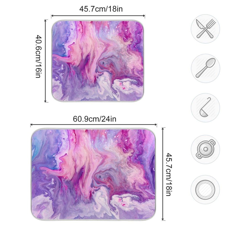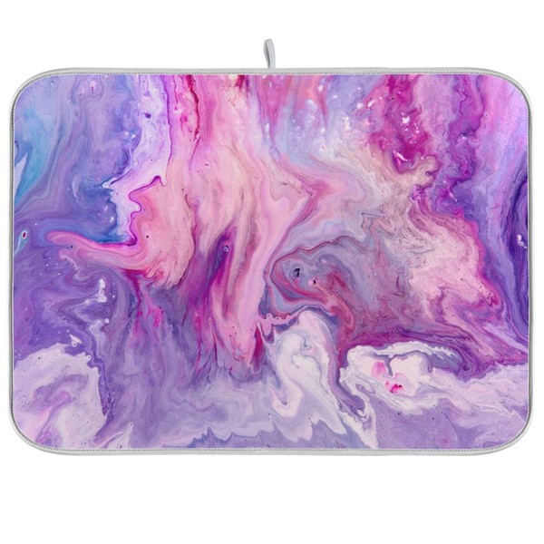 Super Absorbent Dish Drying Mat, Microfiber Fast-Drying Dish Mat, 24" x 18" , Kitchen Dish Drying Pad, Abstract Purplr Pink Marble Paint