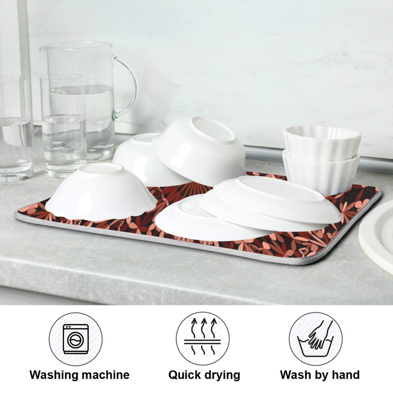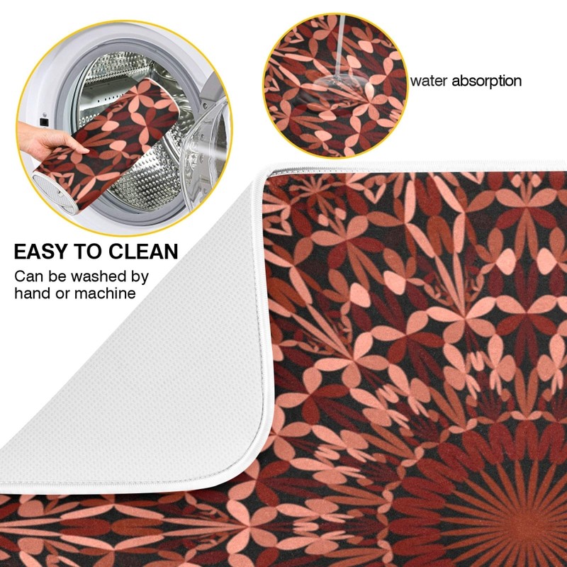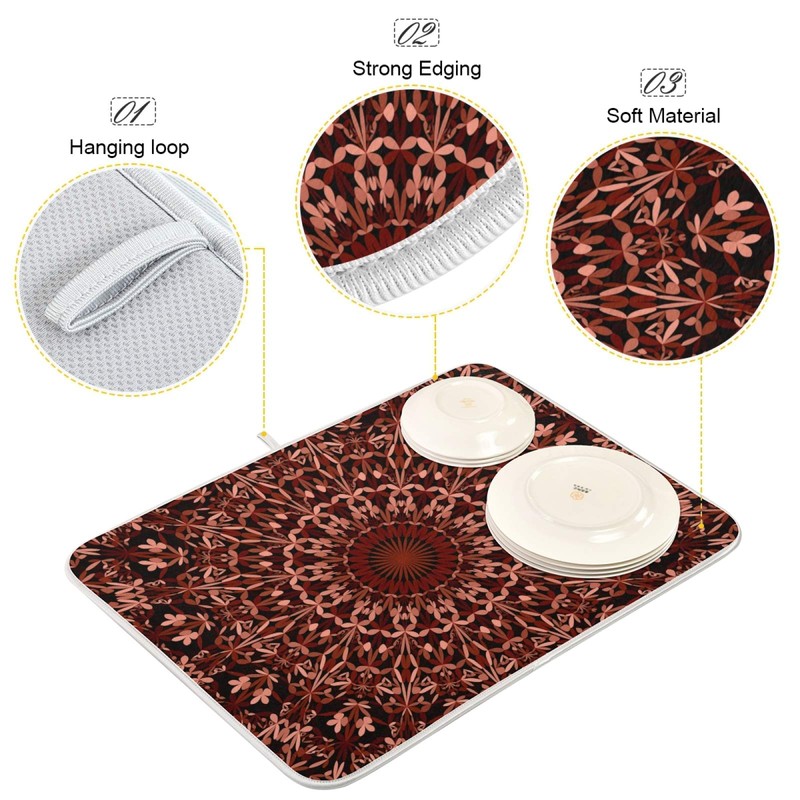 Super Absorbent Dish Drying Mat, Microfiber Fast-Drying Dish Mat, 24" x 18", Kitchen Dish Drying Pad, Boho Maroon Mandala