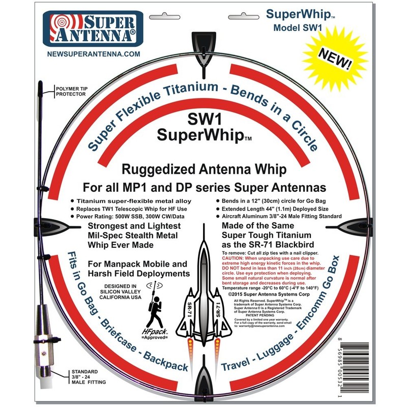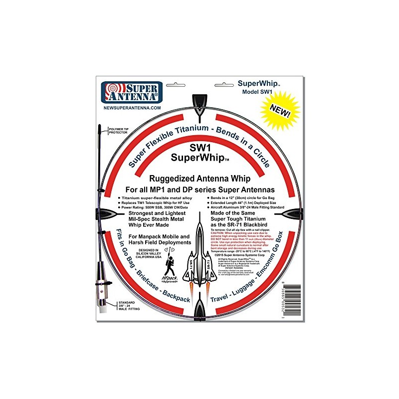 - CONTENTS: SW1 SuperWhip. Designed for field deployment of Super Antenna MP1 and other types of antennas such as mobile ham antennas. Operators who demand top performance in harsh field environments choose the SuperWhip because it is extremely durable, reliable, compact, and versatile. Instantly expand it up to full size for EmComm severe weather operations, Backpacking, DXpeditions, or any type of base installation.