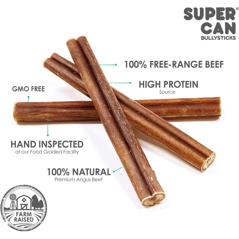 SUPER CAN BULLYSTICKS Bully Sticks for Large Dogs and Feroucious Chewers All Natural Dog Chews, Free Range Grass Fed Beef Sticks Treats. (6" Junior (25-Pack))