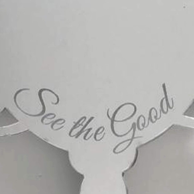 Please choose the size and/or engraving from the options menu. We will engrave on the bottom of the mirror part in the font pictured unless otherwise instructed.