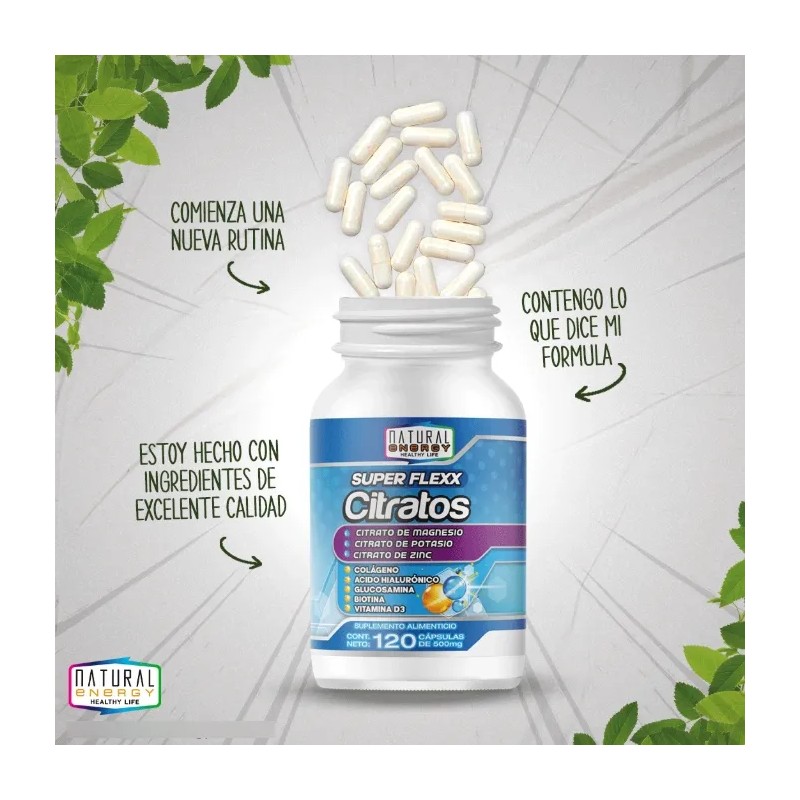 Super Flexx Citratos Con 120cap. De 500mg. Natural Energy Sin Sabor