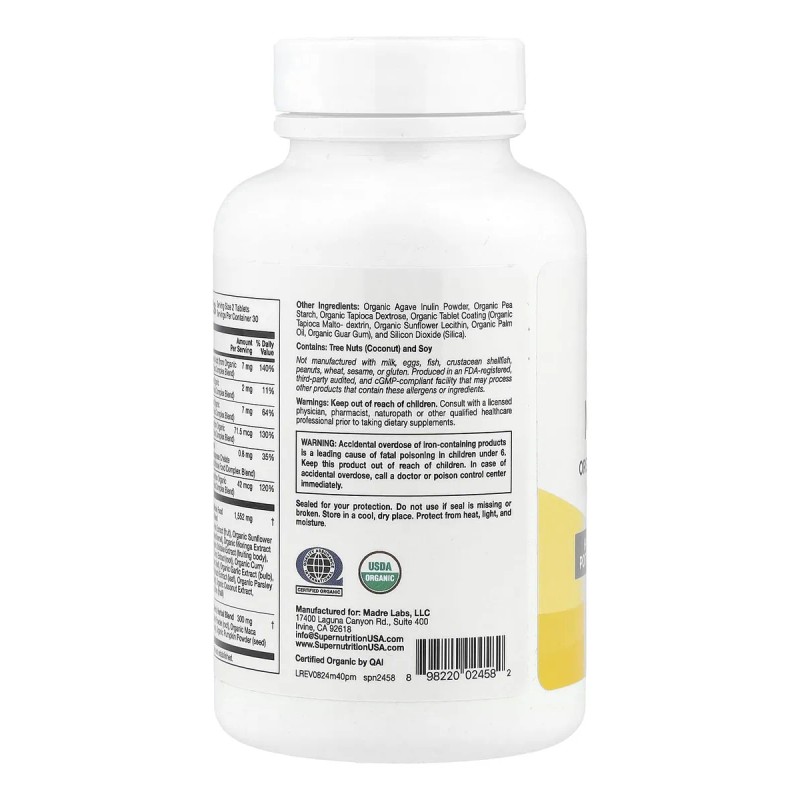 Super Nutrition Multivitamínico Orgánico Hombres 40+ 60 Tab