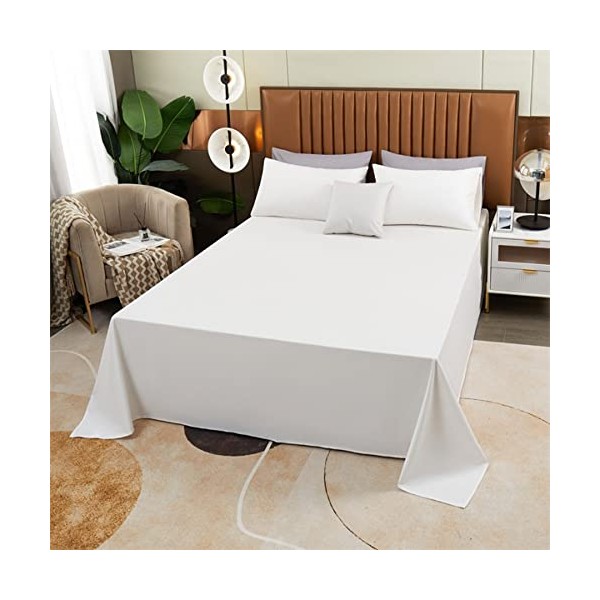 Super Soft 1 Pc Flat Sheet Microfiber Well Designed Pattern - Comfortable, Breathable, Soft & Extremely Durable Top Sheet (White, 1 Queen Flat)