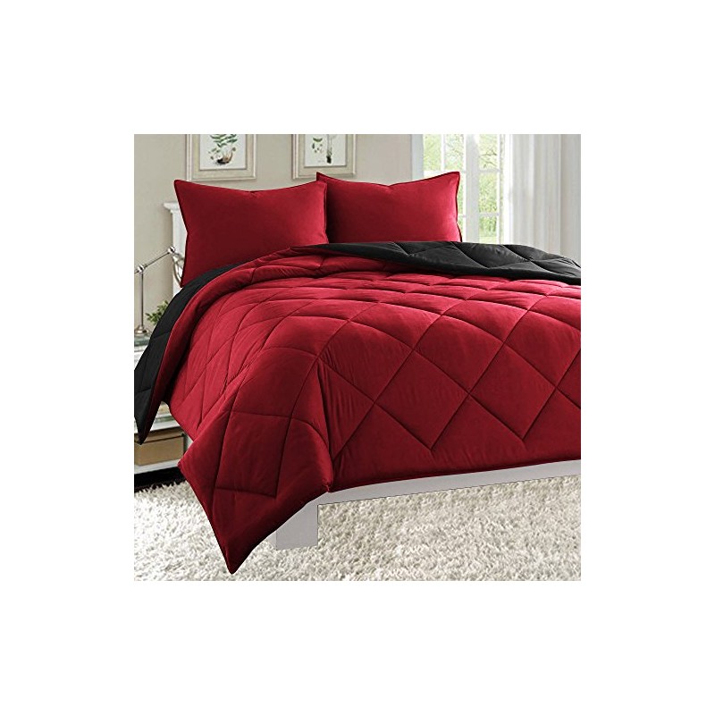 Super Soft Goose Down Alternative 3-Piece Reversible Comforter Set, King, Black/Burgundy