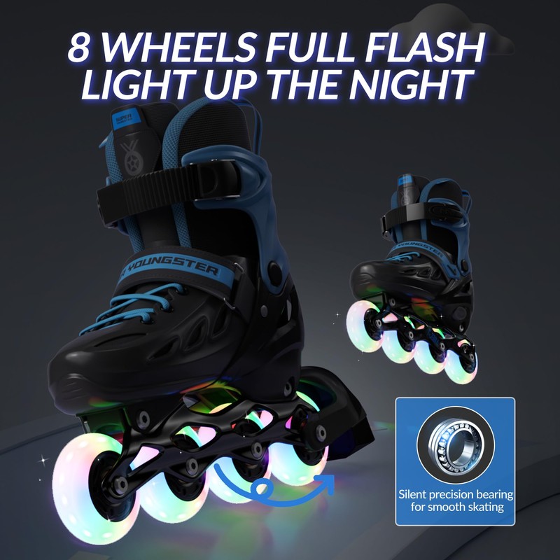 SUPER YOUNGSTER Adjustable Inline Skates for Boys Girls Ages 4-12 with Light Up Wheels, Roller Skates Blades for Youth Kids Indoor & Outdoor Beginners