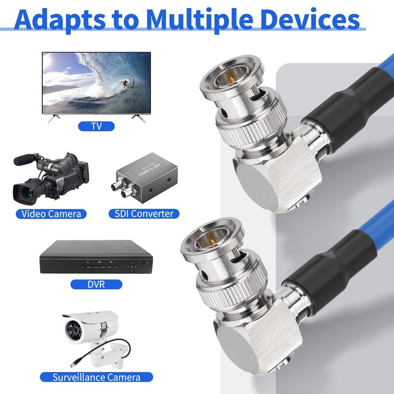 - Cable type: RG6 SDI cable; connector: BNC plug to BNC both the right angle; impedance: 75 ohm; length: 3 m; package list: 1 x HD-SDI cable.