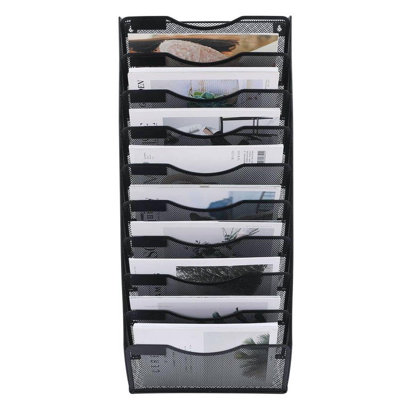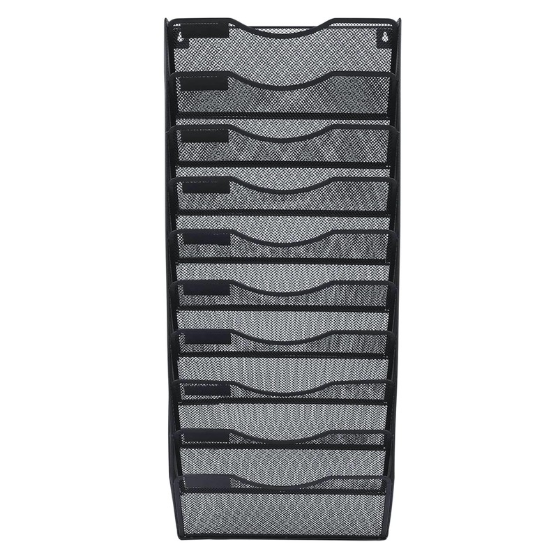 superbpag Hanging Wall File Organizer 10 Pocket, Wall Mounted Mail Document Holder Paper Storage Rack, Wall Organization for Office Home Classroom, Black