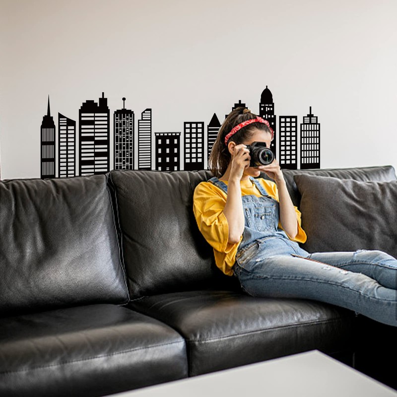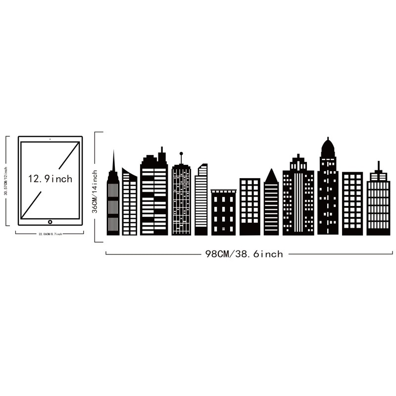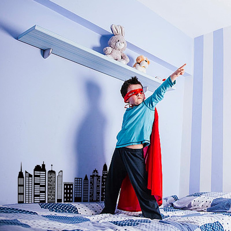 SUPERDANT Cityscape Wall Stickers City Buildings Silhouettes PVC Wall Art Decals Kids Room Vinyl Decor for Boy's Bedroom Livingroom Home Decoration School Dormitory Decals Party Decoration 38.6x14in
