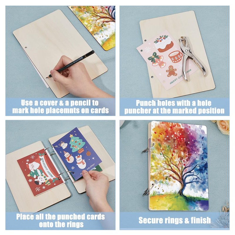 - Meets different needs: the wooden card holder is easy to assemble, simply punch your cards and insert into ring binders. Save your significant photos and write some words to capture the beautiful moment in your life. It is a wonderful gift for friends, family members, partner or special person in your life.