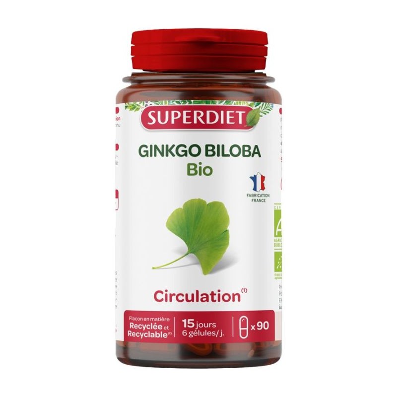 Super Diet Ginkgo Biloba Bio 90 Capsules is a natural and organic food supplement formulated with ginkgo biloba.