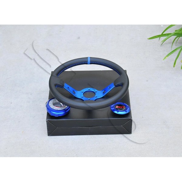 SuperDigitalOutlet 350mm/13.5" Blue Spoke PVC Leather Deep Dish Steering Wheel + Quick Release Kit