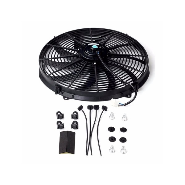 SUPERFASTRACING 16" inch Universal Slim Fan Push Pull Electric Radiator Cooling 12V Mount Kit Black