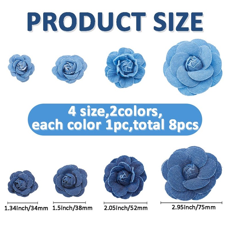 - 8 Styles: This Denim Camellia comes in 8 styles/sizes, 1 piece of each style for a total of 8 pieces. Enough to meet your daily needs. Different shades of blue color can make your DIY works look more rich.