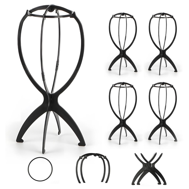 Superhairpieces Wig Stand Portable Wig Stand for Wigs Toupee Hats (Black) Pack of 4