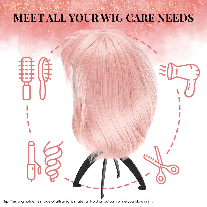 Superhairpieces Wig Stand Portable Wig Stand for Wigs Toupee Hats (Black) Pac...