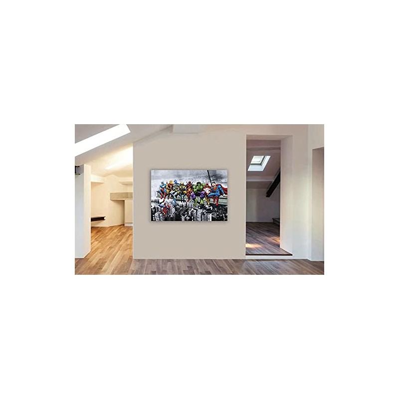 Superheroes - Lunch Atop Skyscraper - Canvas Wall Art Framed Print - Various Sizes (A4 12x8 inches)