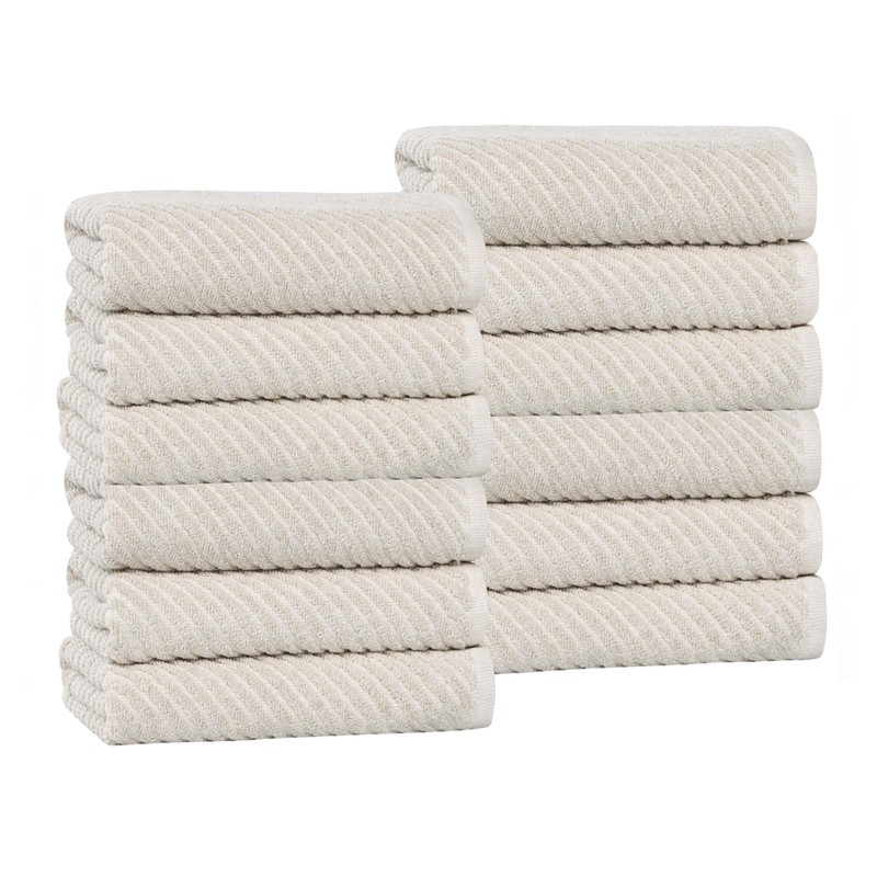 Superior Amelia Viscose Cotton Blend Medium Weight Small Towels, for Kitchen, Bathroom, Shower, Spa, Plush, Quick Dry, Ultra-Soft Essentials, Ribbed Design, Face Towels Washcloths, Set of 12, Beige