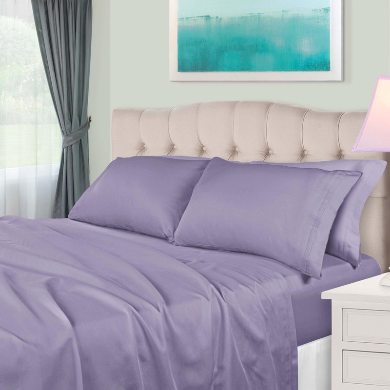 Superior Egyptian Cotton 4 Piece Sheet Set, 650 Thread Count, Modern Design, Sustainable Sheets, Ultra-Soft Basics, Solid, Deep Pocket Fitted Sheet, Flat Sheet, Pillowcases, Olympic Queen, Wisteria