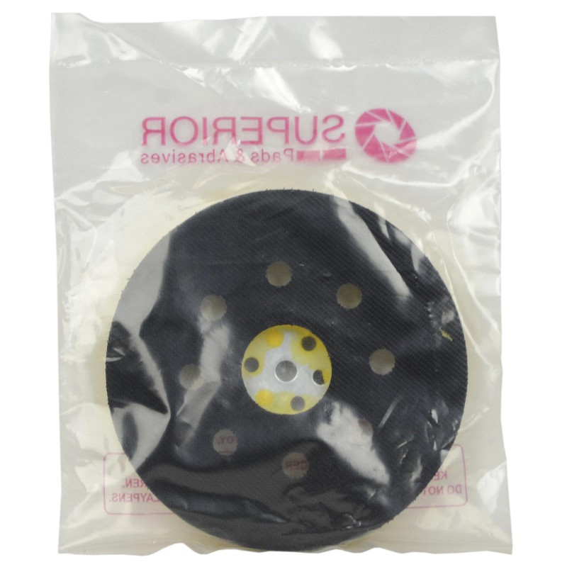 This Superior Parts RSP45 medium sander pad replaces Bosch sanding disc 2610917408. The replacement disc features a medium flexibility, which prevents abrasives and buffers from gouging the sanding surface. Designed for flexibility during sanding projects, this 5” diameter rubber backing is perfect for flat or contour sanding. The 8 vacuum holes on the sander pad efficiently collect debris to ensure a clean work area. This replacement sanding disc uses hook and loop closures to securely attach to sanding pads. Use the RSP45 pad to replace worn out backing discs for the following Bosch sanders: 3107DVS, 1295DH, 1295DVS, 3725DVS, 3107DVS, 3283DVS, 1295D, 1295DP, B7250, B7255, 1295D, 1893D, 1893DVS, 3725DEVS, 1295DVS (sold separately).