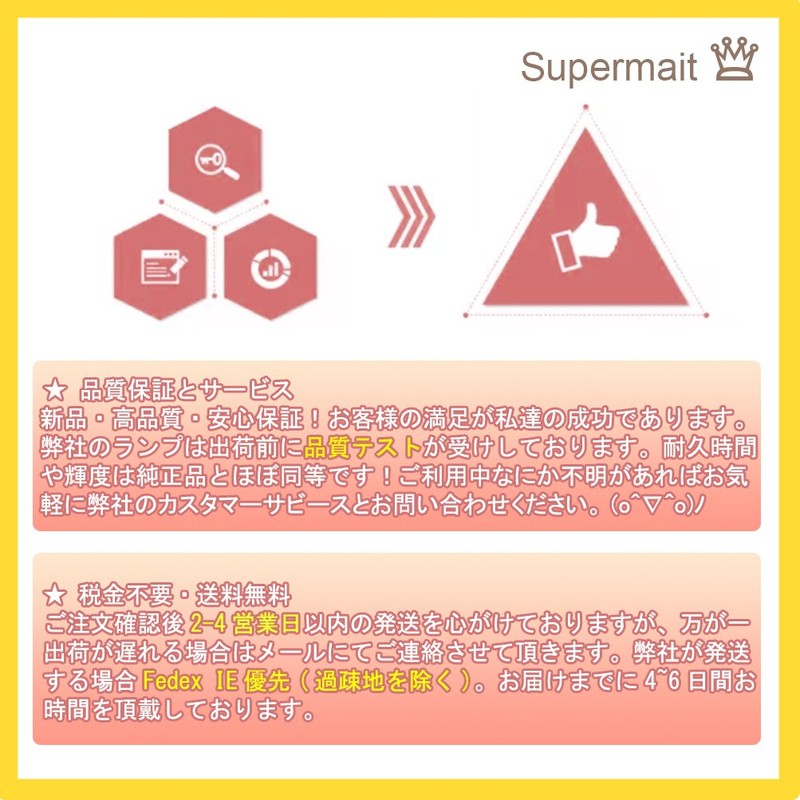 - 🛠Supermait Dienstleistungen : Wir legen großen Wert auf den Schutz der Benutzer und ermutigen unsere Kunden, uns bei Fragen oder Problemen mit unserem Produkt zu kontaktieren. Wir sind bestrebt, alle Probleme zu lösen und unseren Kunden die bestmögliche Erfahrung zu bieten. In dem seltenen Fall, dass ein Produkt innerhalb von 180 Tagen ausfällt, bieten wir einen kostenlosen Ersatz oder eine Rückerstattung an.Vertrauen Sie uns für zuverlässige Projektorlampen.