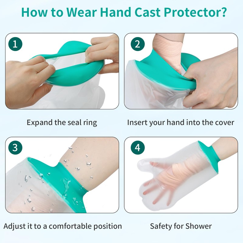 SUPERNIGHT Waterproof Hand Cast Cover for Shower Adult, Hand Cover for Shower After Surgery, Bath Watertight Wrist Wound Protector Resuable Bandage Sleeve Bags for Broken Hand, Wrist, Fingers