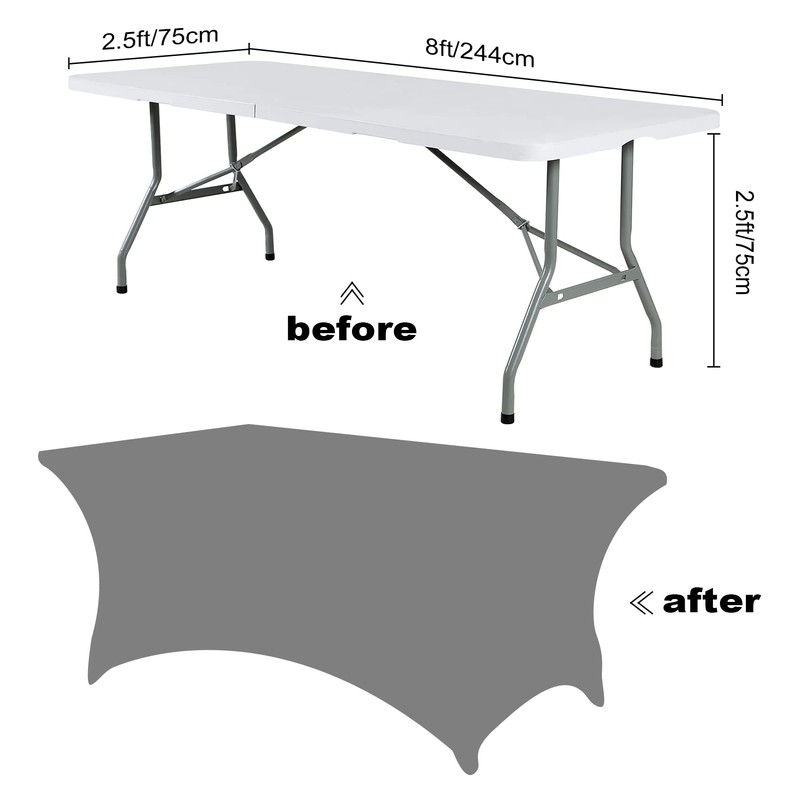 • Size & Design:This stretch table cloth is suitable for standard 8FT tables (96" Length x 30" Width x 30" Height). The four-way stretch spandex material and the elastic pocket design of 4 legs can better fit the table.