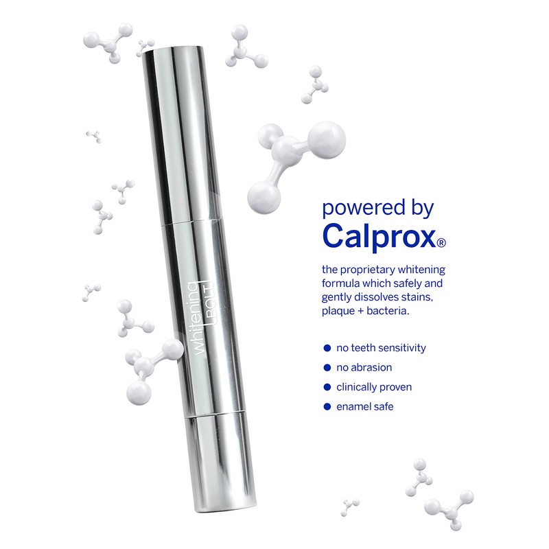 Supersmile’s Whitening Bolt powered by Calprox, locks out stains & keeps teeth white! Our whitening gel features a long-lasting shield protector that allows you to eat & drink whatever you like while remaining stain-free