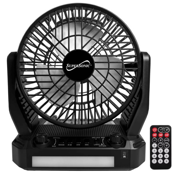 Supersonic Solar-Powered BT Speaker with FM Radio, LED Flashlight & Fan