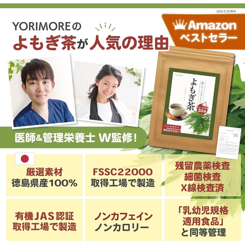 [Supervised by a doctor and a registered dietitian] Mugwort tea from Tokushima Prefecture, 60 bags, tested for residual pesticides, caffeine-free, domestically produced tea bags, mugwort tea, mugwort tea, calorie-free, healthy tea (60 bags)
