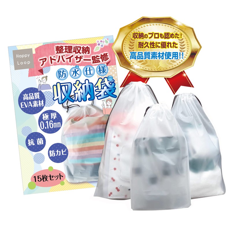 - (Organization and storage advisor by Yoyo Iwasa) This is a versatile item that is waterproof, so you can use it all around and keep it organized easily. The waterproof material makes it safe even when it gets wet. Great for leisure situations; Translucent so you can easily see the contents of the items; Gusseted for improved storage. Can be used repeatedly and repeatedly; 3 different size variations; Just separate it by item! Easy to organize, wash and use even if it gets dirty. When not in use, it can be rolled up for compact storage. Can also be hung on a hook. "