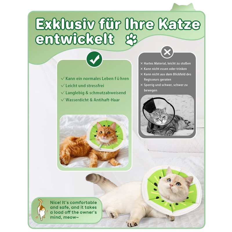 - Warming notes: Before you buy this cat recovery curve, please carefully measure the neck circumference of your kitten and make sure that the length of the cat head is smaller than the depth of the kitten curve. If you have any further questions, please contact us