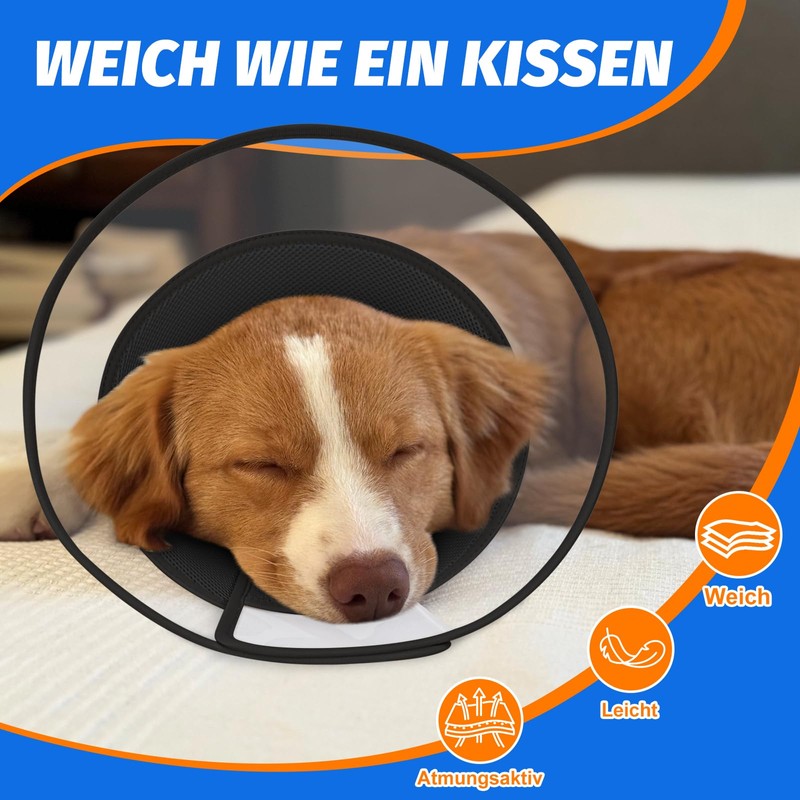 - SOFT AND SAFE Say no to heavy cones of shame. Our dog head cone is made of upgraded lightweight PVC (30% more transparent than standard plastic) for better visibility and less anxiety. Gentle, fabric-coated edges protect against scratches, while the two-layer, breathable neck padding provides comfort. No discomfort from rigid Elizabethan cones - just comfortable, stress-free healing