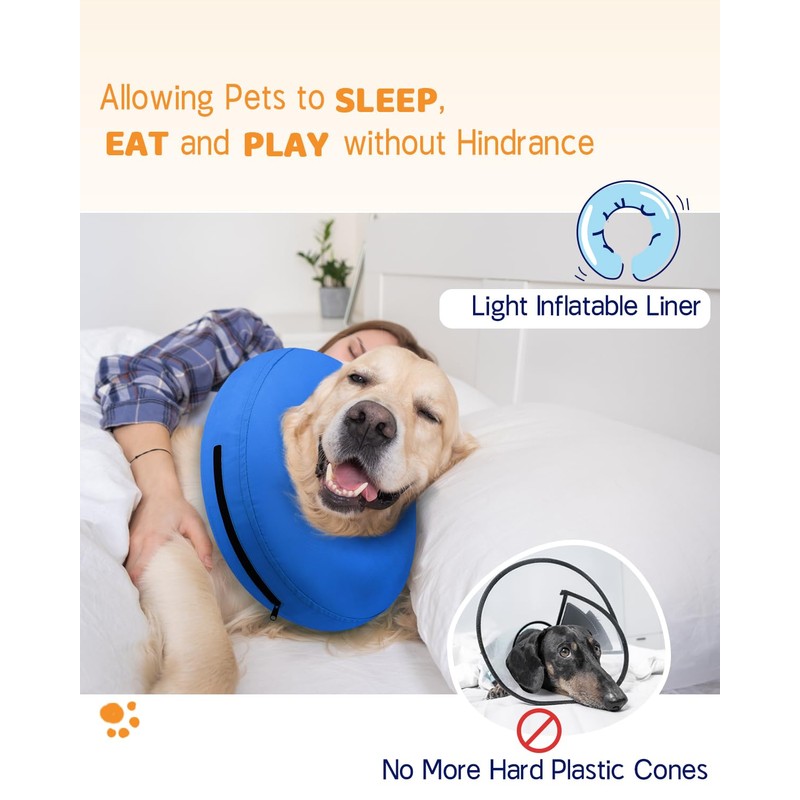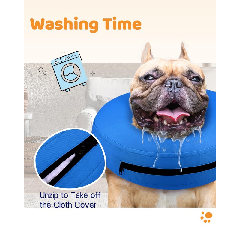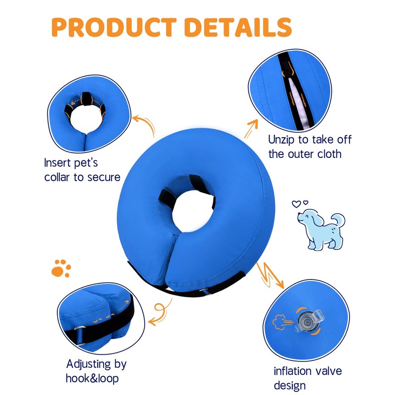 - NON-STICK FABRIC - Unlike other common velvet dog inflatable recovery collar, the outside of this pet cones for dogs is made of upgraded non-stick fabric, then you won't have to keep cleaning pet's hair frequently. Also it is easy to clean if needed, just unzip to take off the outer cloth. Ecollar dog collar post surgery keeps your dog comfortable, can even act as a neck pillow which helps him/her fall asleep quickly and forget the pain of the wound.