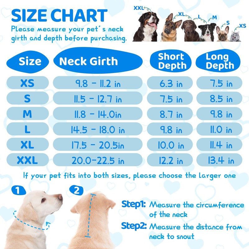 - 【Choose the Correct Size】: Please makesure your pet's neck size and length of the pet's head before purchasing: This product has XS S M L XL XXL 6 sizes.Please choose the correct size for your pet! (note: please make sure your dog's head is not longer than the product's depth). If you have any questions, please feel free to contact us, we are glad to solve any of your problems.