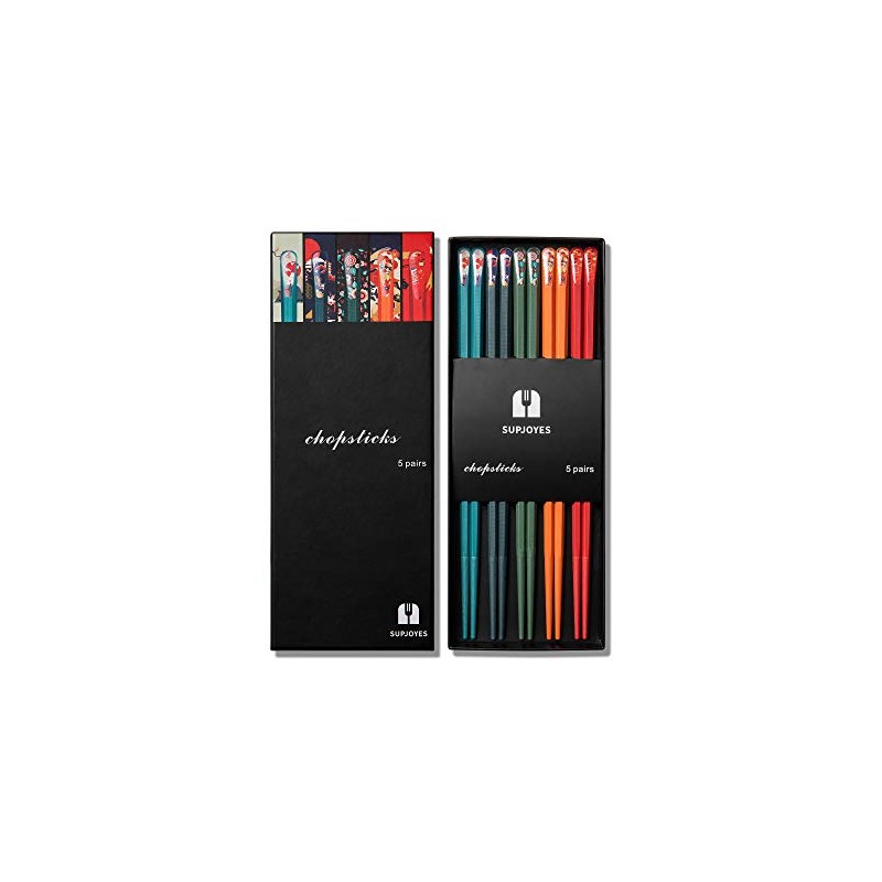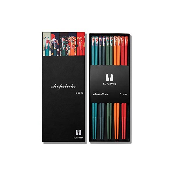 - UNIQUE DESIGN - SUPJOYES chopsticks set includes 5 different refined colors of chopsticks, each pair has different delicate Japanese style pattern on the top. Also comes with exquisite gift Package. Making your life colorful and good idea for gift.