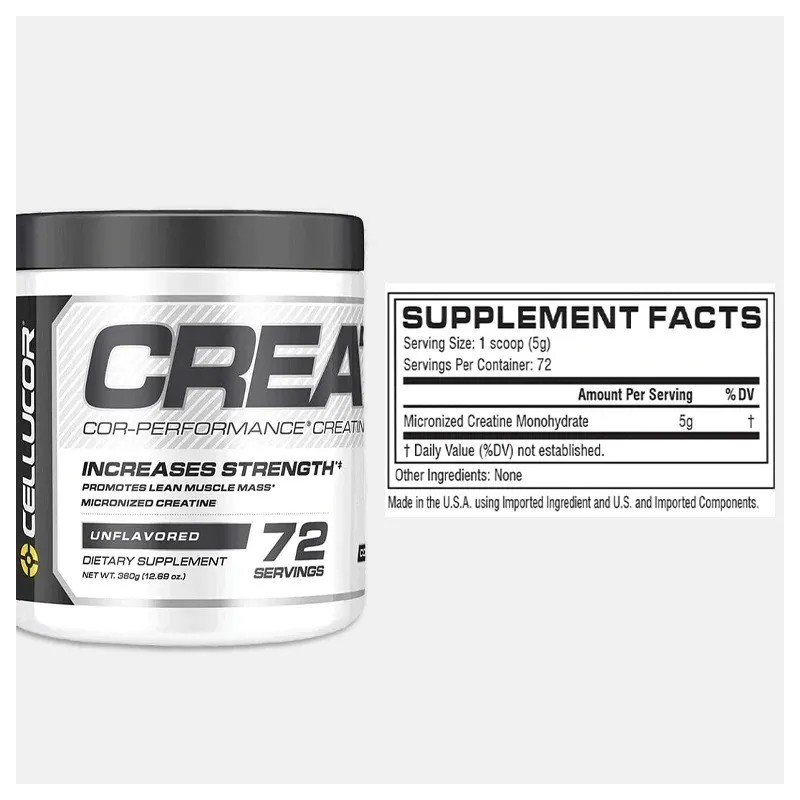 Cellucor Cor-performance Creatine es un suplemento de creatina en pote de 360g diseñado para apoyar la nutrición balanceada y complementar la alimentación. La creatina es conocida por su capacidad para fortalecer el tejido muscular y es producida naturalmente por el cuerpo, encontrándose también en alimentos como el pescado, la carne, los lácteos y el huevo. Este suplemento es ideal para quienes realizan actividades físicas que demandan fuerza y resistencia, como el levantamiento de pesas y otros deportes de alto impacto, contribuyendo a un rendimiento mejorado y una recuperación muscular más rápida.