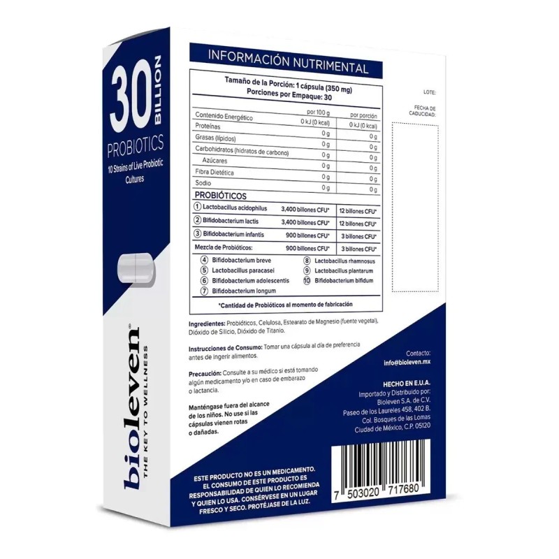 Suplemento En Cápsulas Bioleven Probióticos 30 Billones En Caja Un