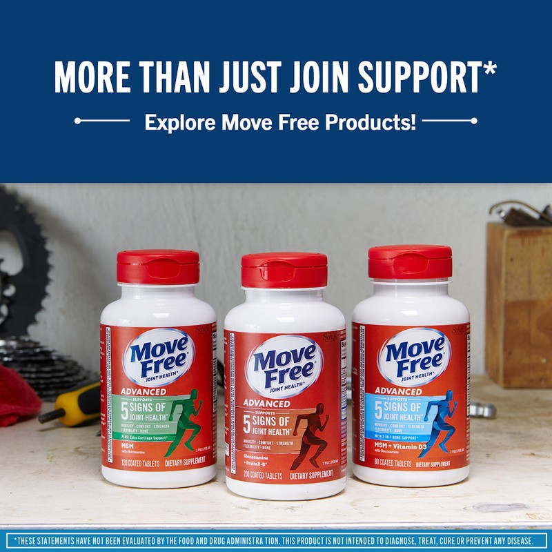 Move Free Advanced Glucosamine Chondroitin MSM + Vitamin D3 Joint Support Supplement, Supports Mobility Comfort Strength Flexibility & Bone + Immune Health - 120 Tablets (60 servings)*