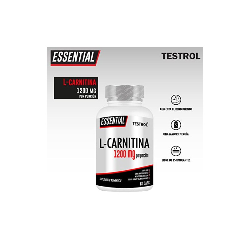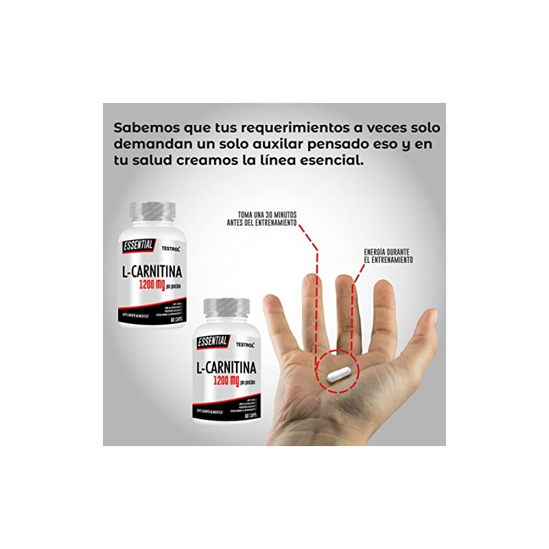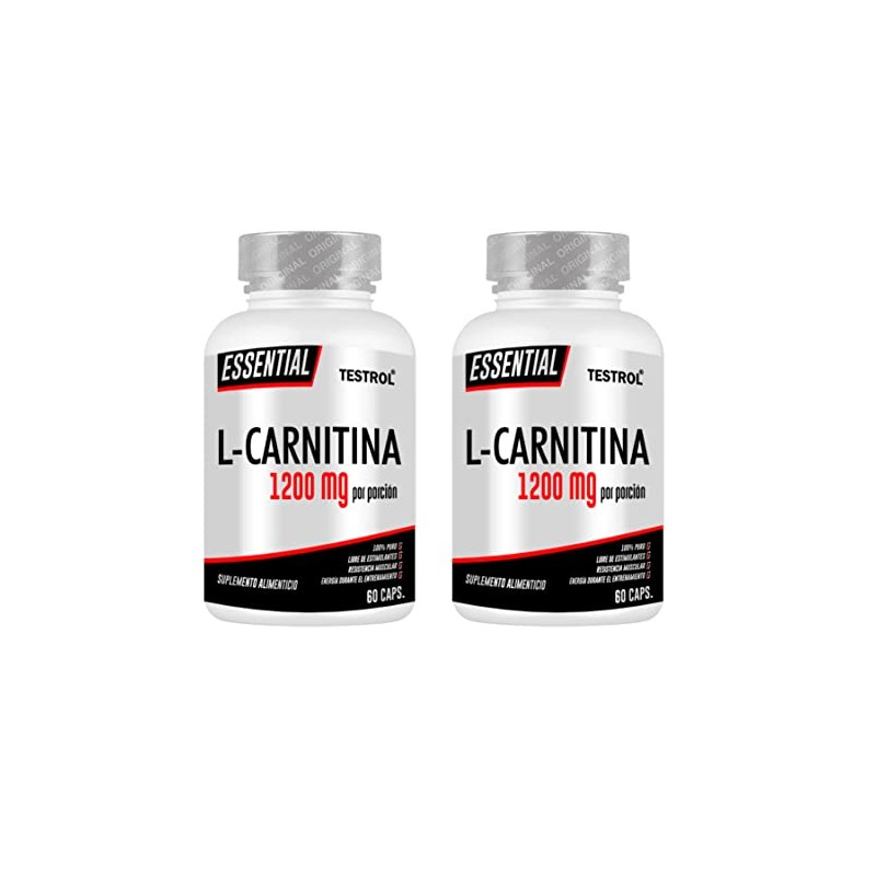 Suplemento Natural Para el Rendimiento físico y protección muscular. Carnitina Essential 1200 mg, 100 por ciento Pura, L carnitina Testrol. 60 Cápsulas Combo 2 unidades