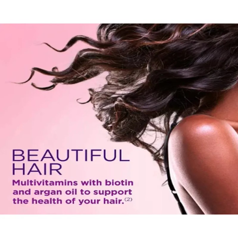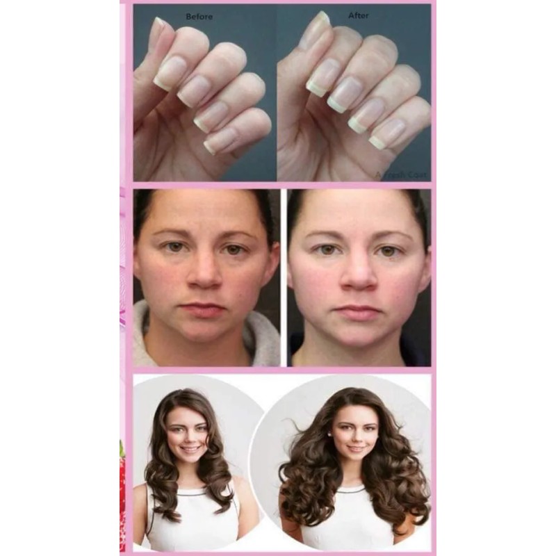 Esta fórmula innovadora le brinda los nutrientes vitales que su cuerpo necesita para respaldar su belleza natural desde adentro. Las vitaminas B ayudan con el metabolismo energético, y la biotina ayuda a mantener el cabello saludable y las uñas saludables. La vitamina E y la vitamina C son antioxidantes. La vitamina C está involucrada en la producción y formación de colágeno, que forma la base para una piel vibrante. La vitamina A ayuda con el mantenimiento de la piel y la salud en general.