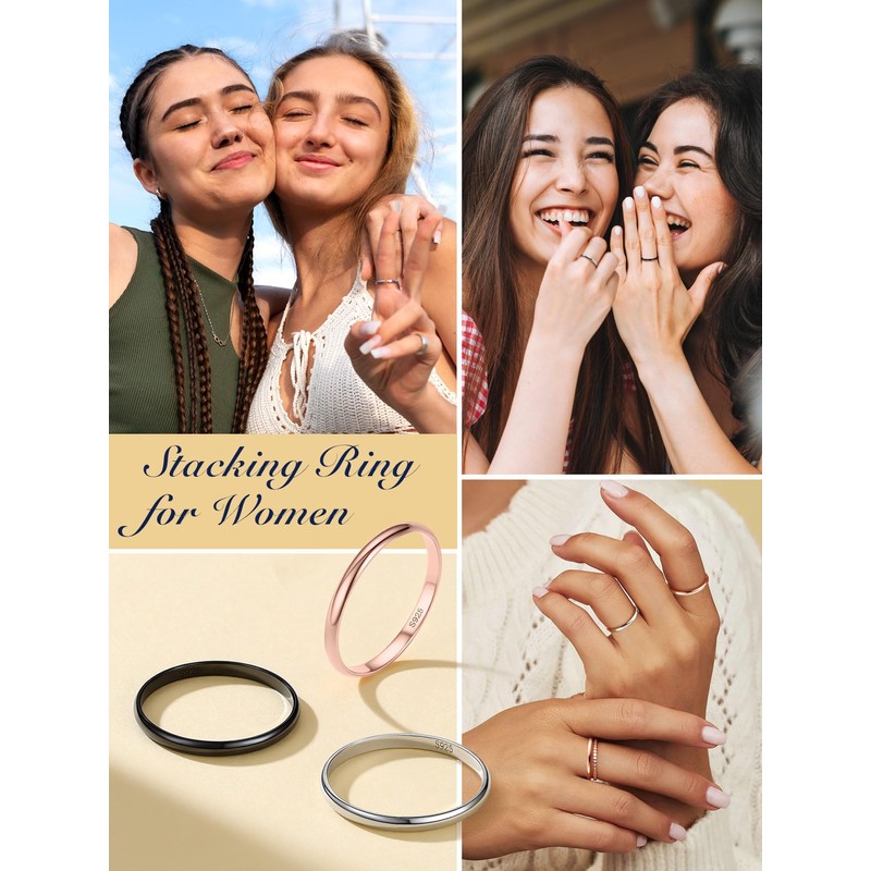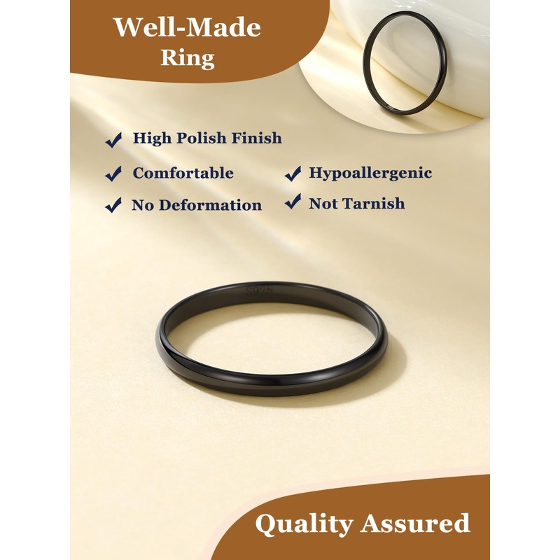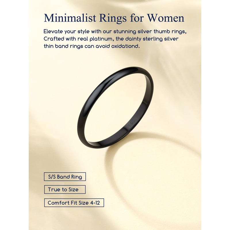 - STERLNG SILVER RINGS-- Exquisitely crafted in hypoallergenic 925 sterling silver with black plating. High quality stackable rings, high polished, tarnish resistant, never fade, smooth edge, comfort fit.